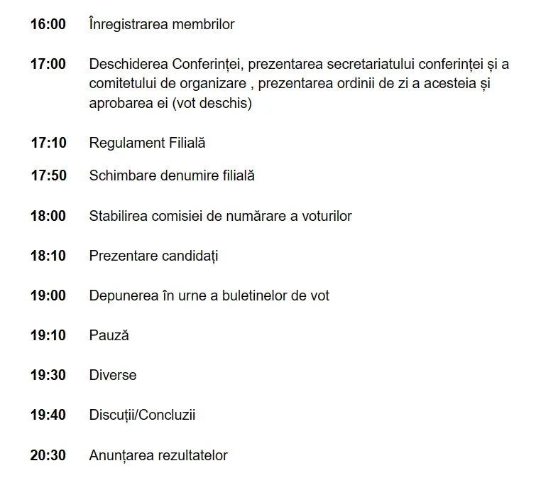 Pe ordinea de zi a Conferinței Teritoriale Extraordinare a filialei Timiș vor figura următoarele puncte:
