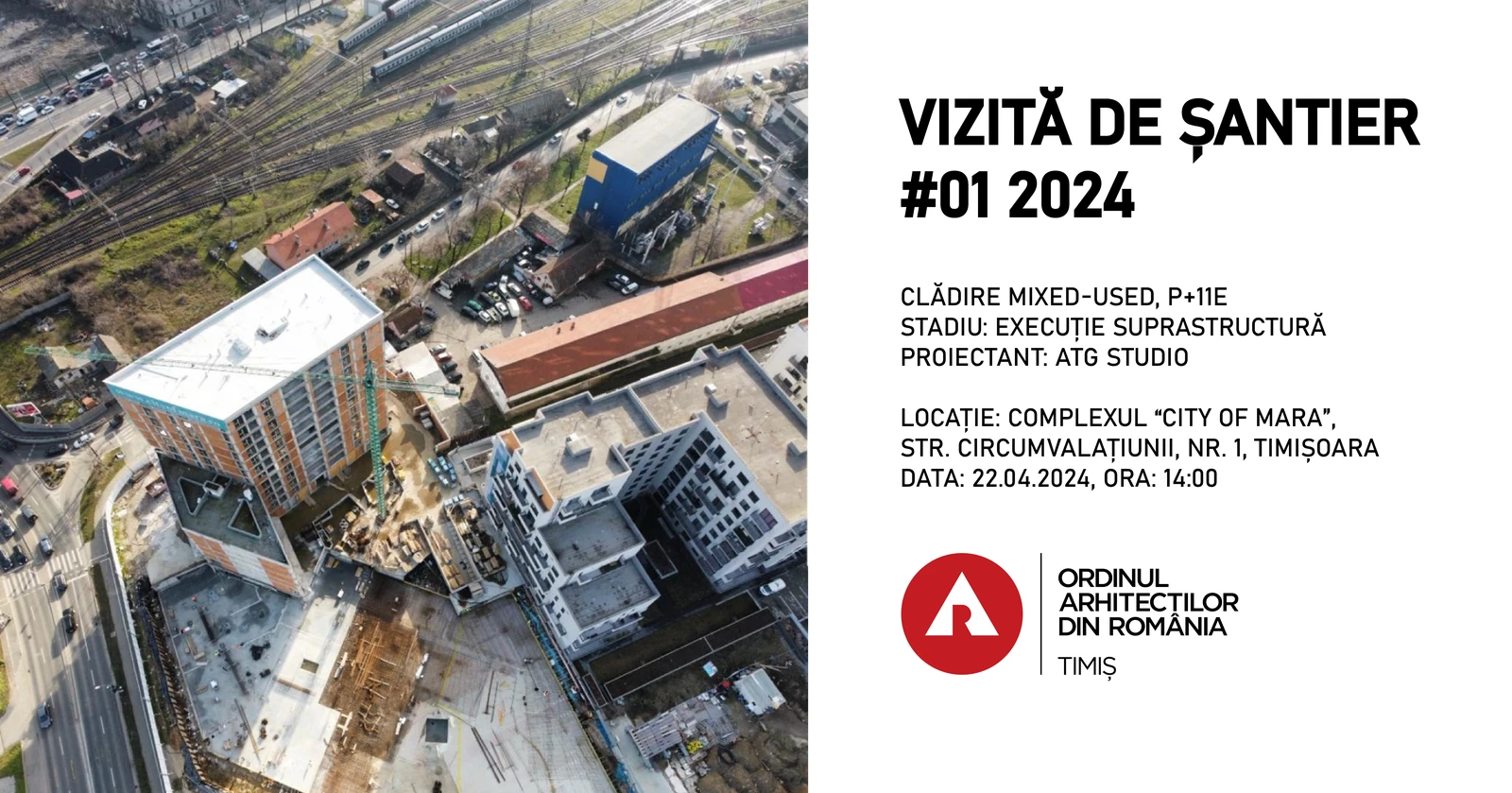 Vă invităm cu entuziasm să paricipați la prima vizită de șantier din acest an organizată de Ordinul Arhitecților din România, Filiala teritorială Timiș, pe data de 22 aprilie, începând cu ora 14:00, la locația Complexul ”City of Mara”, str. Circumvalațiunii, nr.1, Timișoara.