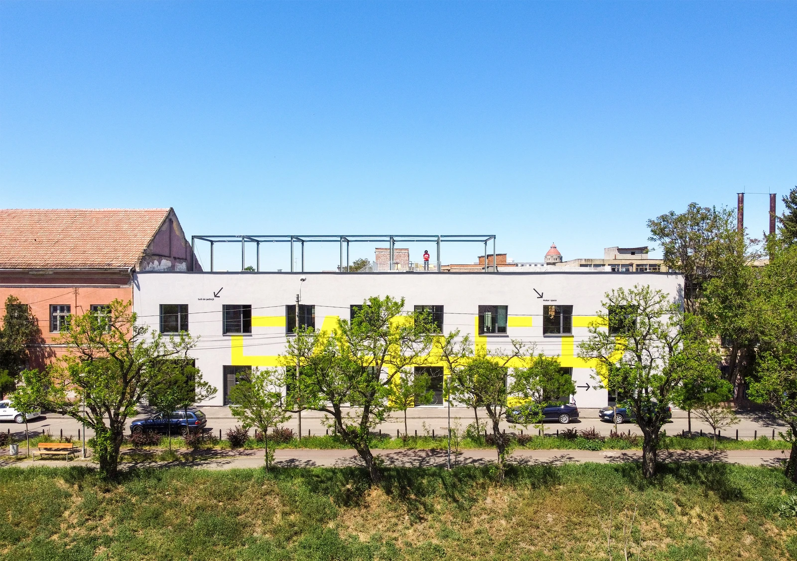 Clădirea FABER face parte dintr-un fost sit industrial important pentru oraș, în cartierul Fabric al Timișoarei, pe malul Begăi: fostele Fabrici Unite de Ulei și Săpun, acum cunoscute sub numele AZUR. Situl e important pentru că reprezintă locația inițială a unei afaceri care după perioada comunistă s-a întors la familia care a inițiat-o, familia Farber. Actualmente, fosta platformă industrială adăpostește o listă lungă de mici antreprenori și artiști, în timp ce proprietarii nu s-au aruncat încă în a reformula brutal conținutul parcelei, chiar dacă nu mai au activitate industrială aici de mai mult de o jumătate de secol. Din punct de vedere urbanistic, situl se află în mijlocul unui spațiu în tranziție, ce conform viitorului PUG al orașului trebuie să se transforme într-o zonă cu funcțiuni mixte. Deși există diverse discuții despre modul în care s-ar putea dezvolta acest ansamblu, clădirea FABER este prima care a fost reabilitată. Clădirea are o suprafață construită desfășurată de aproximativ 840 mp, structurată și distribuită cvasi-egal pe două niveluri - parter și etaj. La nivel de funcțiuni, parterul acomodează o sală mare de evenimente, un foaier de acces, grupuri sanitare, zona de bistro cu bucătăria aferentă precum și un gang care va asigura accesul auto în interiorul curții. Etajul este compus din zona de cowork și makerspace, alături de 2 săli de ședințe medii și 2 săli de ședințe mici, suprapuse. Circulația verticală este speculată sub forma unui aparat complex, compus din rampe de scări și podeste/platforme care asigură atât accesul în spațiile de la etaj cât și posibilitatea pentru diverse activități în exterior, și culminează cu un loc de belvedere înspre Bega și oraș. Structurarea la nivel de organizații reflectă necesitățile spațiale ale fiecăreia, astfel încât Ambasada operează parte din parter, operatorul coworkului, FOR funcționează la etaj, iar FABER gestionează sala mare de evenimente și una dintre sălile medii de ședințe de la etaj.